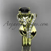 Unique 14k yellow gold diamond flower, leaf and vine wedding ring, engagement set with a Black Diamond center stone ADLR224S