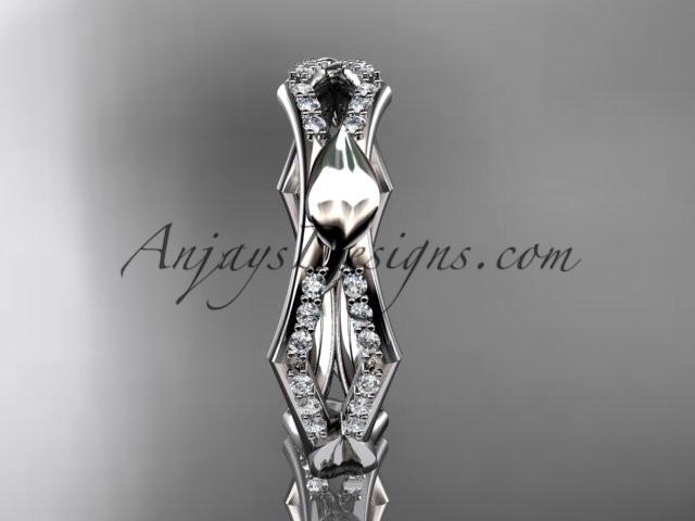 14k white gold diamond leaf and vine wedding band,engagement ring ADLR353B