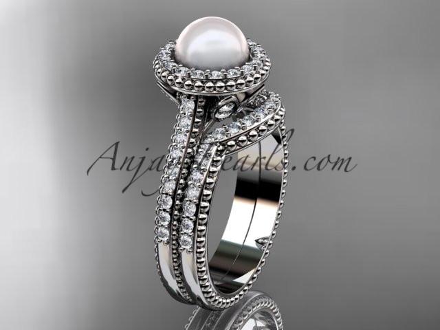 This unique 14kt white gold pearl engagement ring comes in beautiful jewelry box.