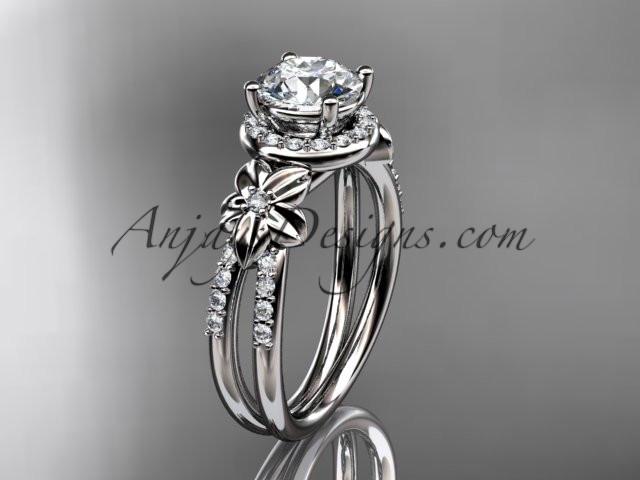 14k white gold leaf and flower diamond unique engagement ring, wedding ring ADLR373