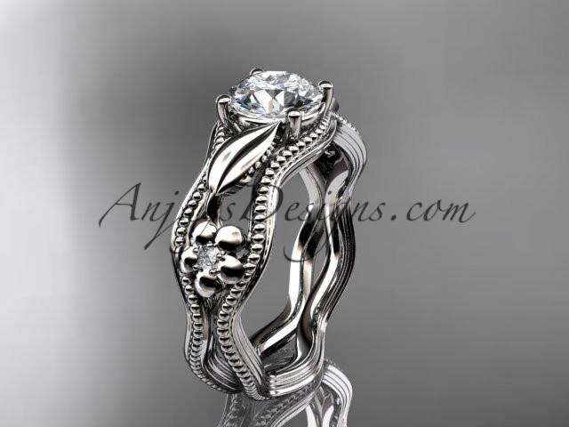 14k white gold leaf and flower diamond unique engagement ring with a "Forever One" Moissanite center stone ADLR382