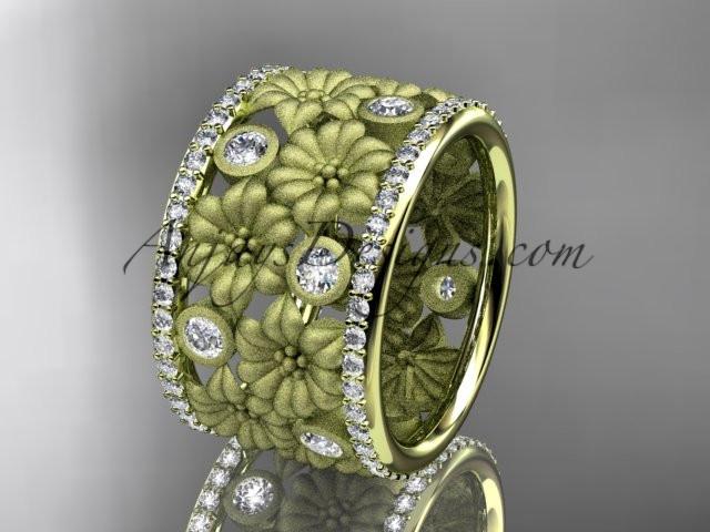 14k yellow gold diamond flower wedding ring, engagement ring ADLR232B