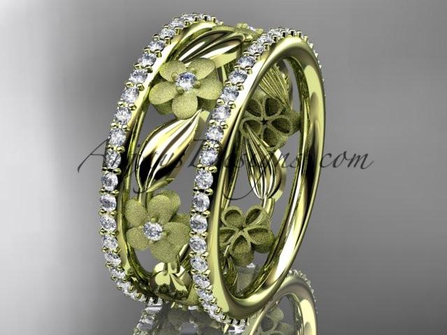 14k yellow gold diamond flower wedding ring, engagement ring ADLR233B
