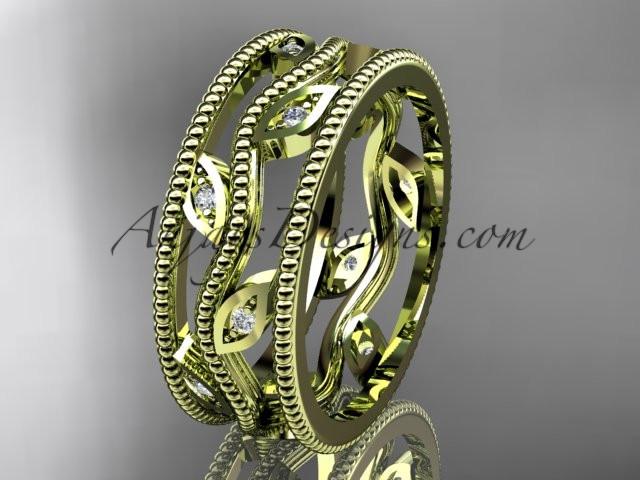 14k yellow gold diamond leaf and vine wedding band,engagement ring ADLR7B