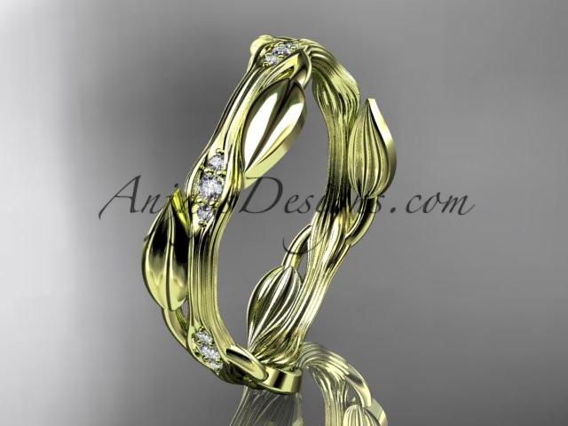 14k yellow gold diamond leaf and vine wedding ring, engagement ring ADLR31