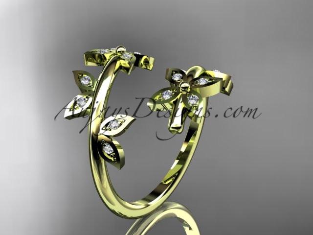 14k yellow gold diamond leaf and vine wedding ring,engagement ring,wedding band ADLR27