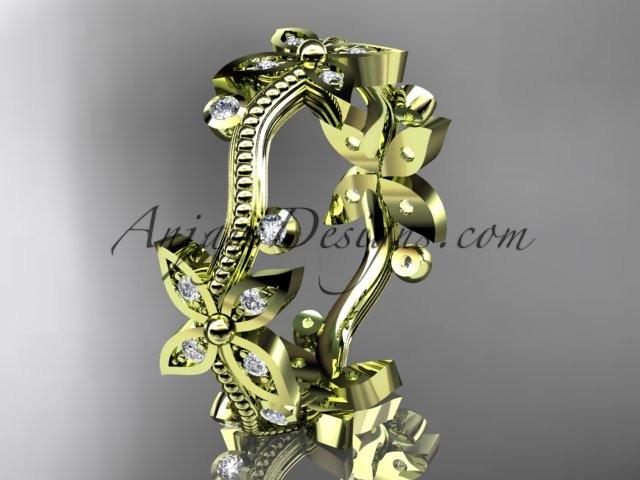 14k yellow gold diamond leaf and vine wedding ring, engagement ring, wedding band ADLR3A