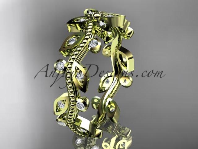 14k yellow gold diamond leaf and vine wedding ring, engagement ring, wedding band ADLR3B
