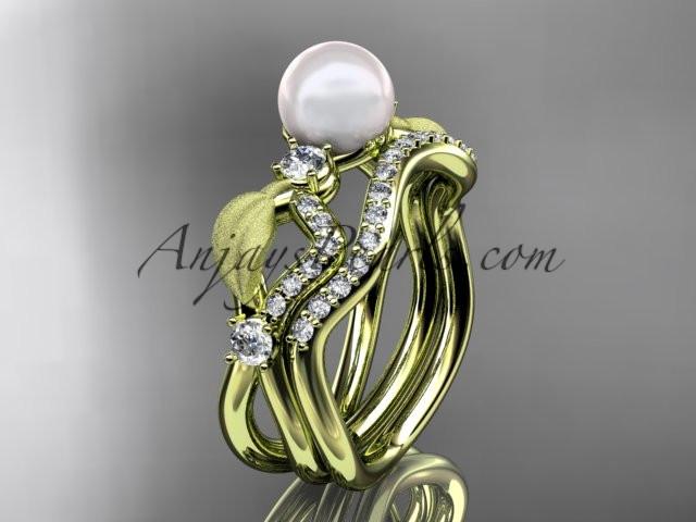 14k yellow gold diamond pearl leaf engagement set AP68S