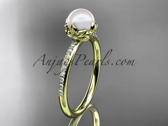 14k yellow gold diamond pearl vine and leaf engagement ring AP92