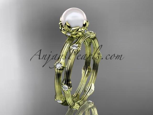 14k yellow gold diamond pearl vine and leaf engagement set AP38S