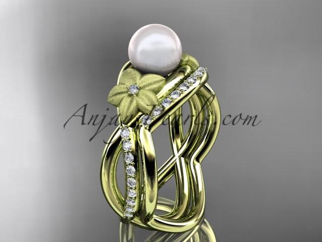 14k yellow gold diamond pearl vine and leaf engagement set AP90S