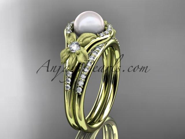 14k yellow gold diamond pearl vine and leaf engagement set AP91S