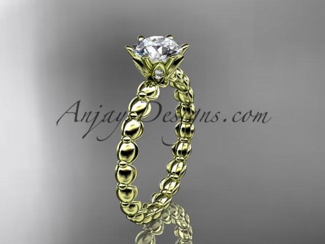 14k yellow gold diamond vine and leaf wedding ring, engagement ring with "Forever One" Moissanite center stone ADLR34