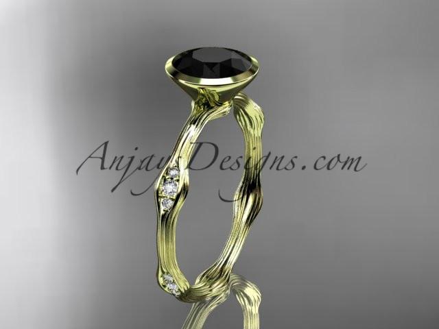 14k yellow gold diamond vine wedding ring, engagement ring with Black Diamond center stone ADLR21A