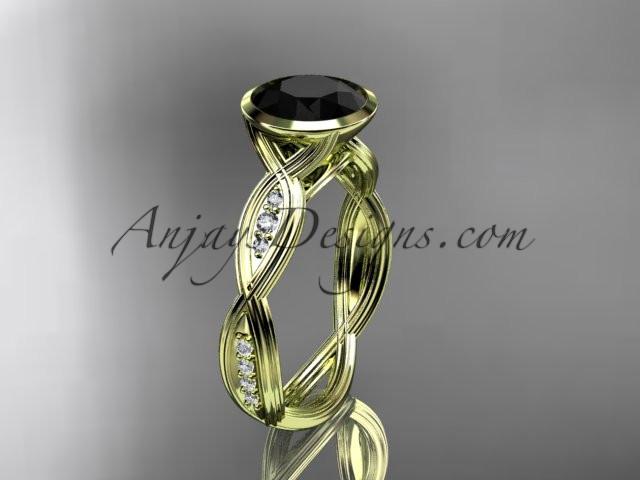 14k yellow gold diamond wedding ring,engagement ring with Black Diamond center stone ADLR24