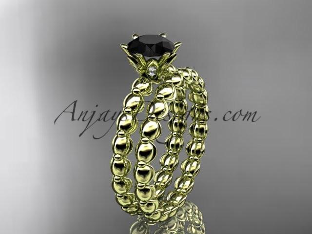 14k yellow gold diamond wedding ring, engagement set with a Black Diamond center stone ADLR34S
