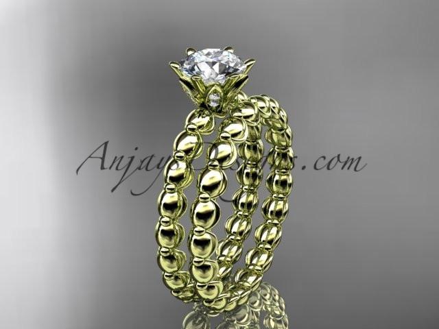 14k yellow gold diamond wedding ring, engagement set with a "Forever One" Moissanite ADLR34S