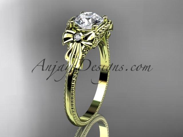 14k yellow gold leaf and flower diamond unique engagement ring ADLR376