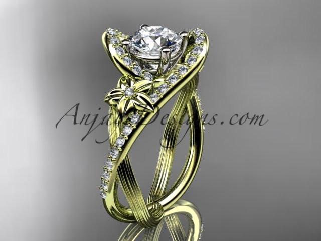 14k yellow gold leaf and flower diamond unique engagement ring, wedding ring ADLR369