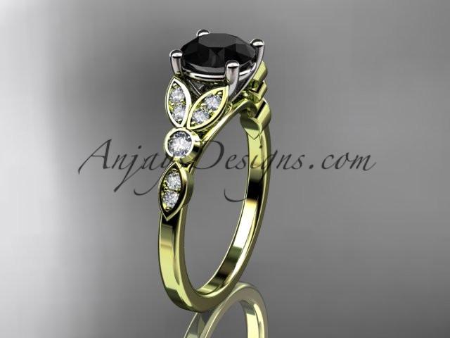 14k yellow gold unique engagement ring, wedding ring with a Black Diamond center stone ADLR387