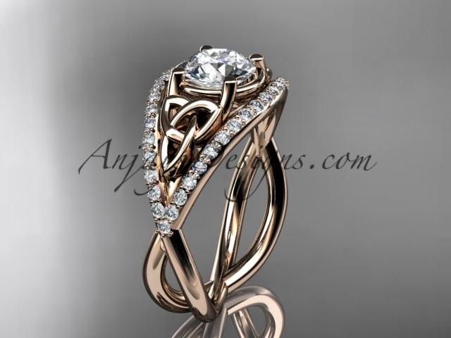 14kt rose gold celtic trinity knot engagement ring ,diamond wedding ring CT788