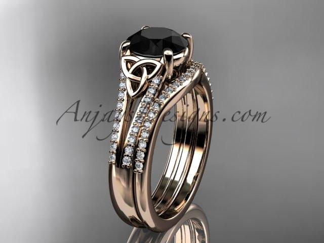 14kt rose gold celtic trinity knot engagement ring ,diamond wedding ring, engagment set with a Black Diamond center stone CT7108S