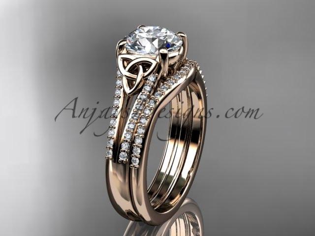 14kt rose gold celtic trinity knot engagement ring ,diamond wedding ring, engagment set with a "Forever One" Moissanite center stone CT7108S