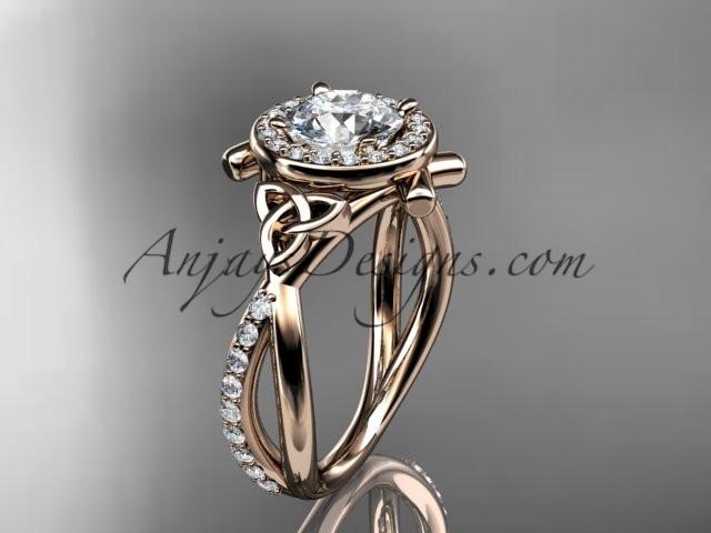 14kt rose gold celtic trinity knot engagement ring, wedding ring CT789