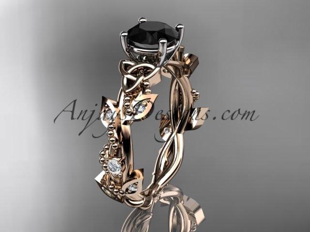 14kt rose gold celtic trinity knot engagement ring, wedding ring with a Black Diamond center stone CT759