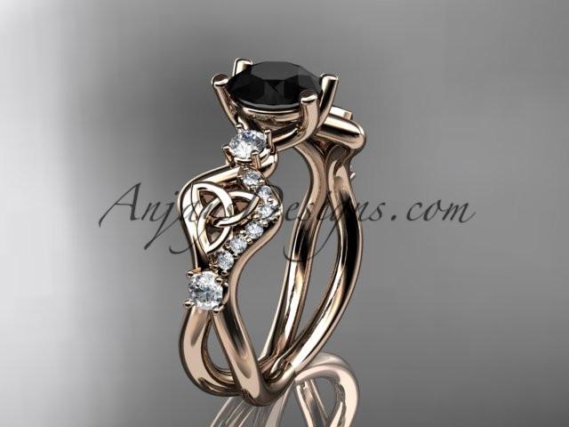 14kt rose gold celtic trinity knot engagement ring, wedding ring with a Black Diamond center stone CT768