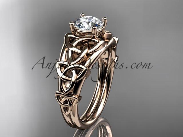 14kt rose gold celtic trinity knot engagement ring , wedding ring with a "Forever One" Moissanite center stone CT765
