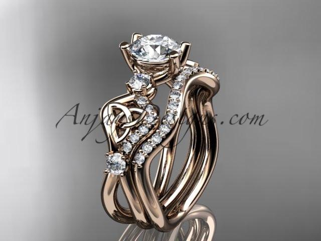 14kt rose gold celtic trinity knot engagement set, wedding ring CT768S