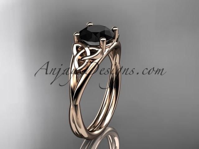 14kt rose gold celtic trinity knot wedding ring, engagement ring with a Black Diamond center stone CT7189