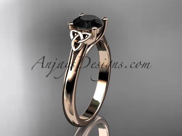 14kt rose gold celtic trinity knot wedding ring with a Black Diamond center stone CT7154