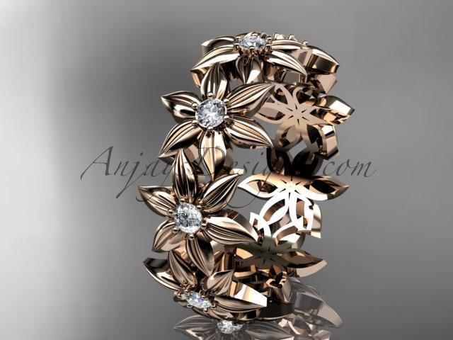 14kt rose gold diamond band and vine wedding band, floral engagement band, wedding band ADLR339B
