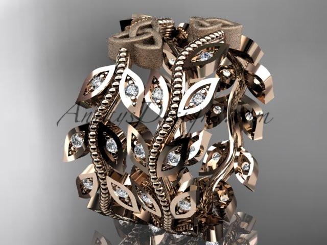 14kt rose gold diamond celtic trinity knot, leaf and vine wedding ring, engagement set, wedding band CT7162B