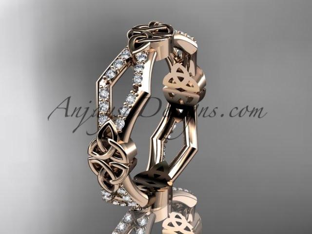 14kt rose gold diamond celtic trinity knot wedding band, triquetra ring, engagement ring CT7518B
