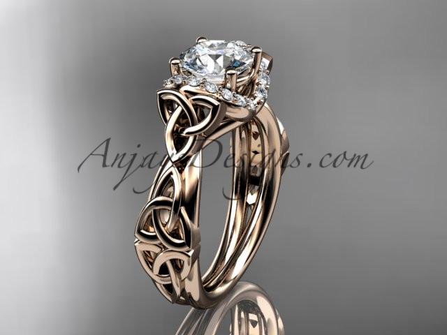 14kt rose gold diamond celtic trinity knot wedding ring, engagement ringCT7289