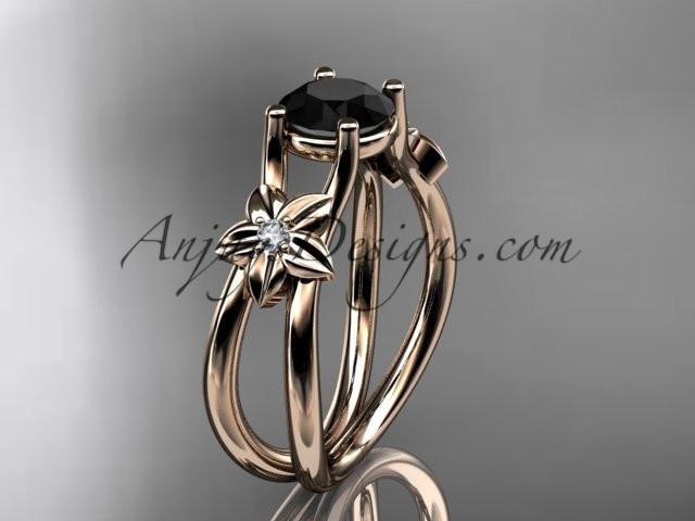 14kt rose gold diamond floral wedding ring, engagement ring with a Black Diamond center stone ADLR130