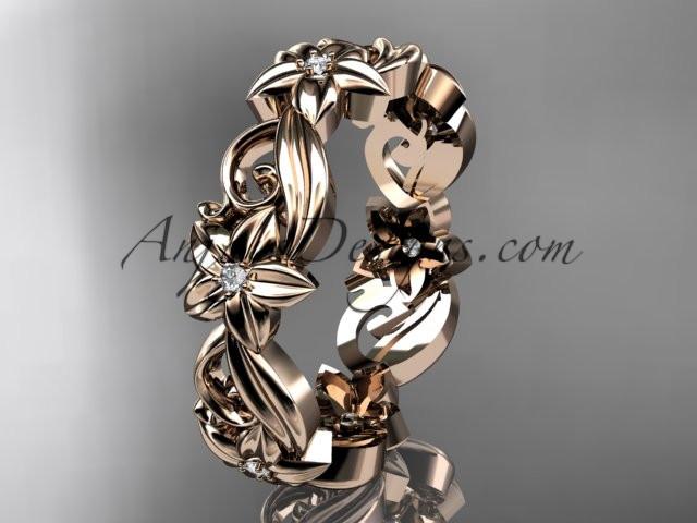 14kt rose gold diamond flower wedding ring, engagement ring, wedding band ADLR217