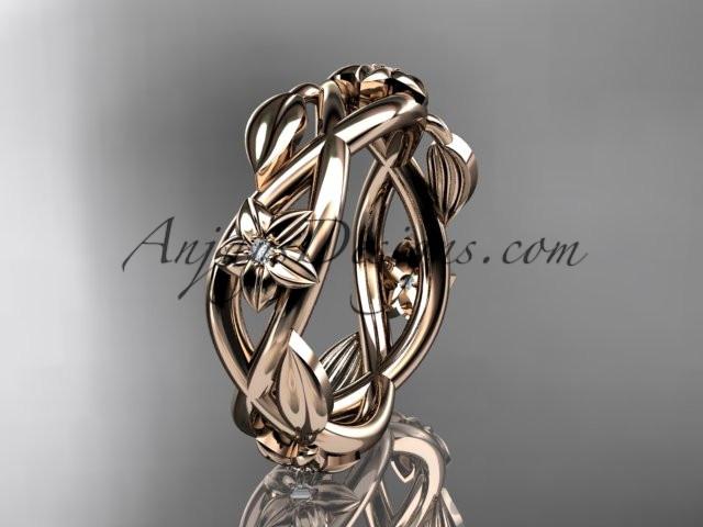 14kt rose gold diamond leaf and flower wedding band, engagement ring ADLR402B