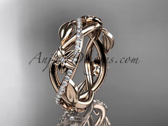 14kt rose gold diamond leaf and flower wedding band, engagement ring ADLR403B