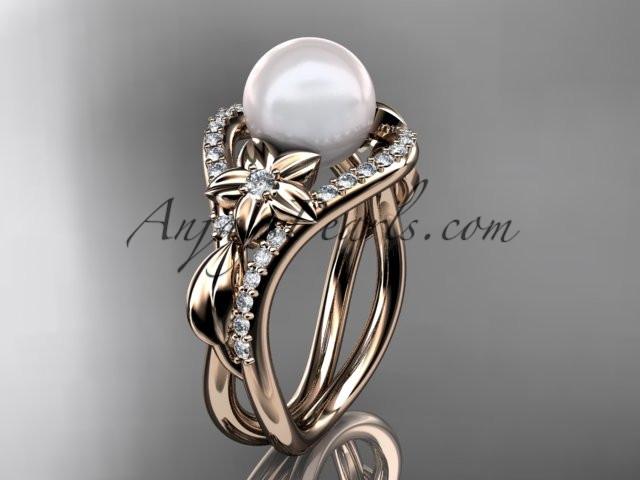 14kt rose gold diamond leaf and flower wedding ring, engagement ring AP244