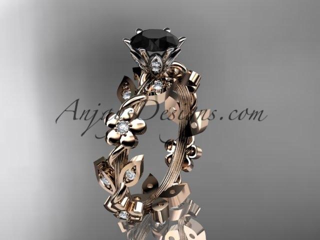This is gorgeous 14kt rose gold diamond leaf and vine engagement ring with a Black Diamond center stone ADLR209