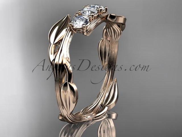 14kt rose gold diamond leaf and vine three stone ring ADLR247