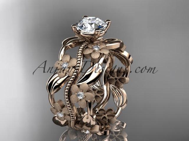 14kt rose gold diamond leaf and vine wedding ring, engagement ring ADLR188