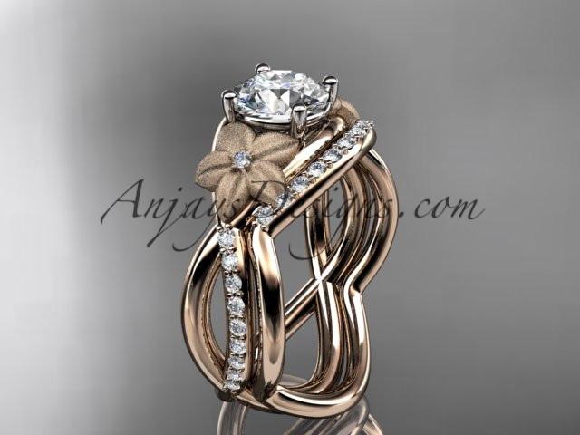 14kt rose gold diamond leaf and vine wedding ring, engagement ring ADLR90S