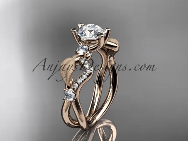 14kt rose gold diamond leaf and vine wedding ring, engagement ring, wedding band with "Forever One" Moissanite center stone ADLR68