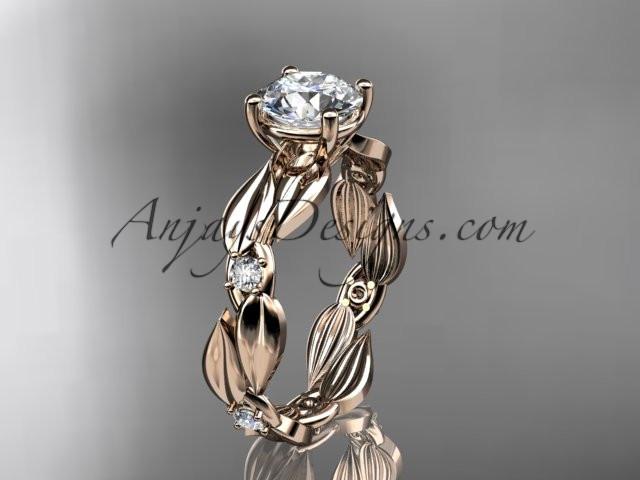 14kt rose gold diamond leaf and vine wedding ring, engagement ring with "Forever One" Moissanite center stone ADLR58